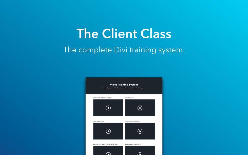 As Divi designers, we like typography and good coffee. We don’t like the administrative busywork that comes with running our practices. That’s why I created The Client Class: to completely eliminate client training from design practices. Train your clients with the click of a button.
