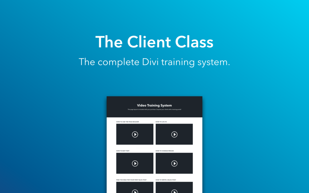 As Divi designers, we like typography and good coffee. We don’t like the administrative busywork that comes with running our practices. That’s why we created The Client Class: to completely eliminate client training from design practices. Train your clients with the click of a button.